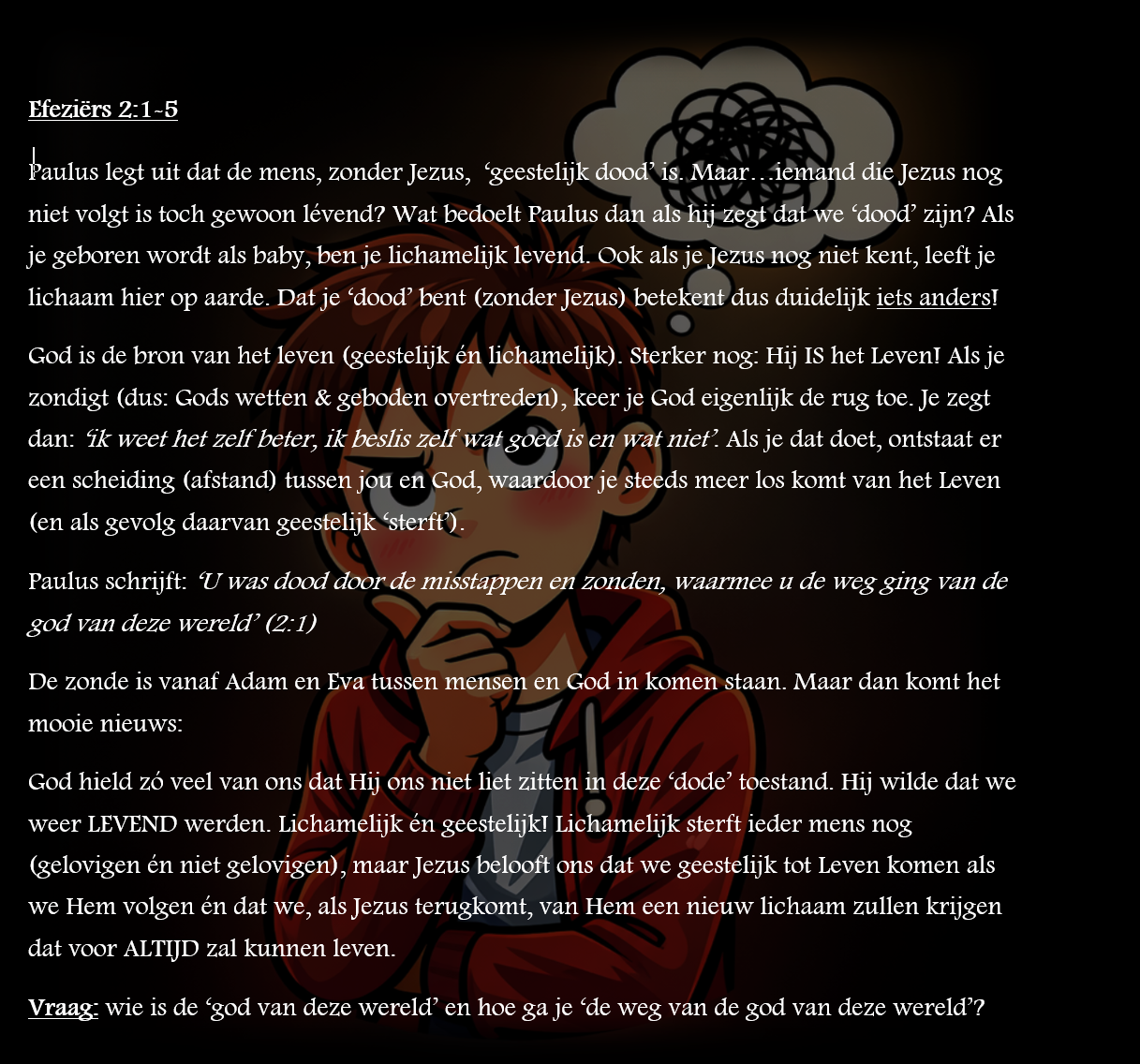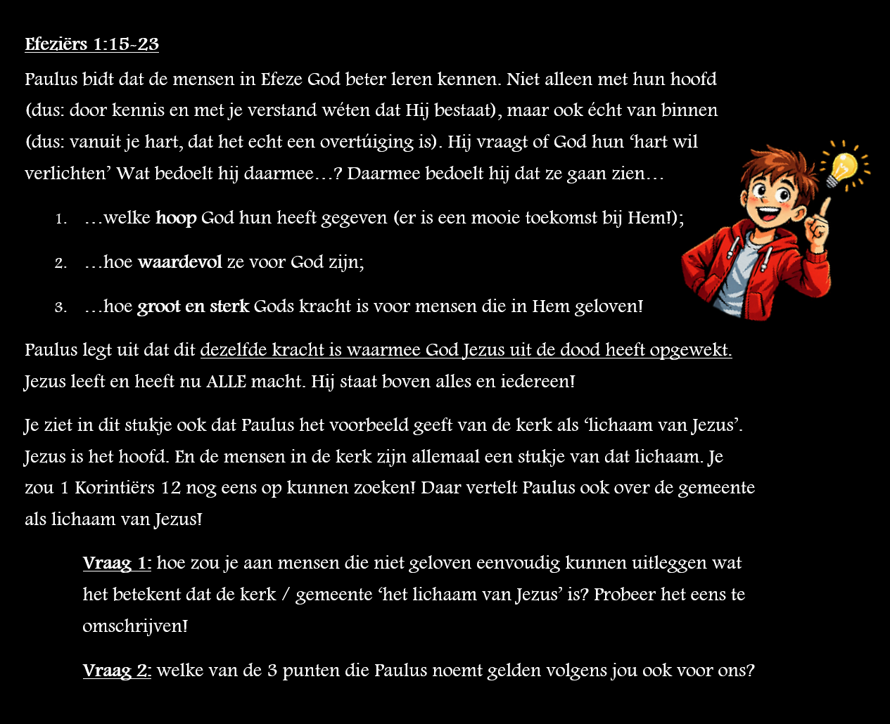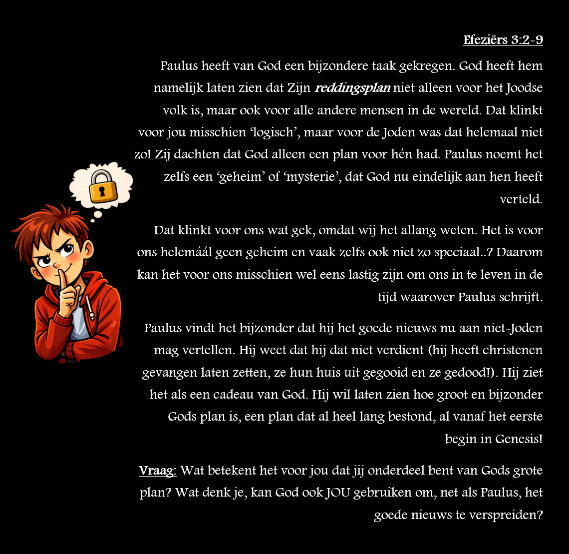 Heel verstandig om éérst even hier langs te komen voor je het stukje in de Bijbel gaat lezen! Klik hieronder op het stukje waar jij een samenvatting van nodig hebt om het te vergroten! Succes!